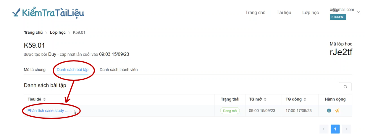 Trong danh sách bài tập được giao của lớp, học viên chọn bài tập cần nộp